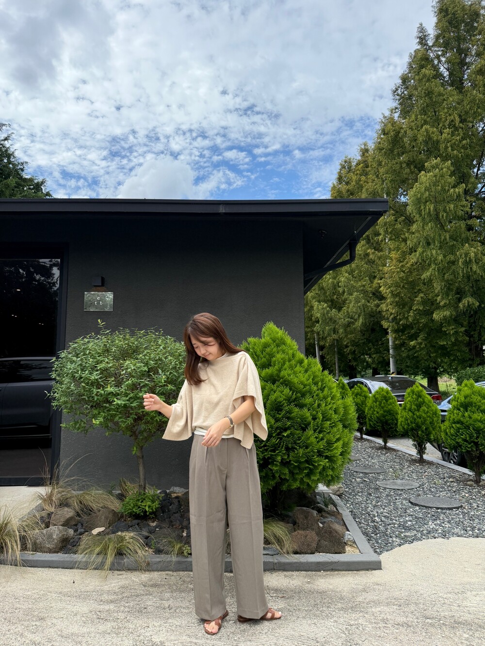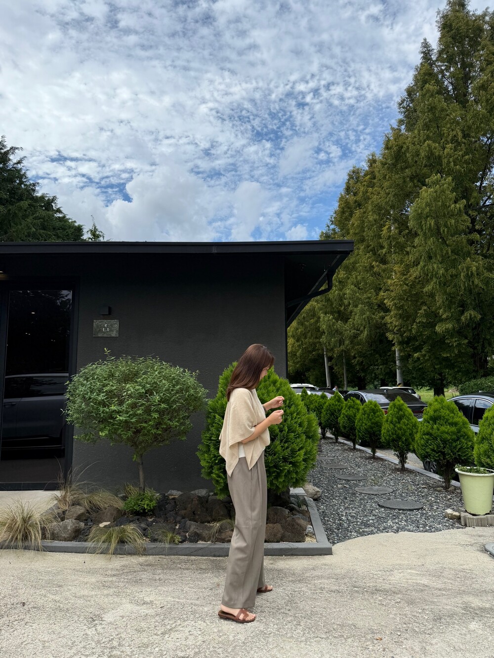 앞부분은 요즘 유행하는 터크가 잡힌 라인으로 시크하면서도 여성스러워요.