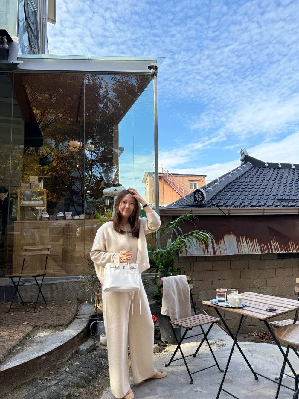 힙부분에는 귀여운 사이즈의 아웃포켓이 있어 힙을 가리지 않아도 슬림하게 연출이 됩니다.