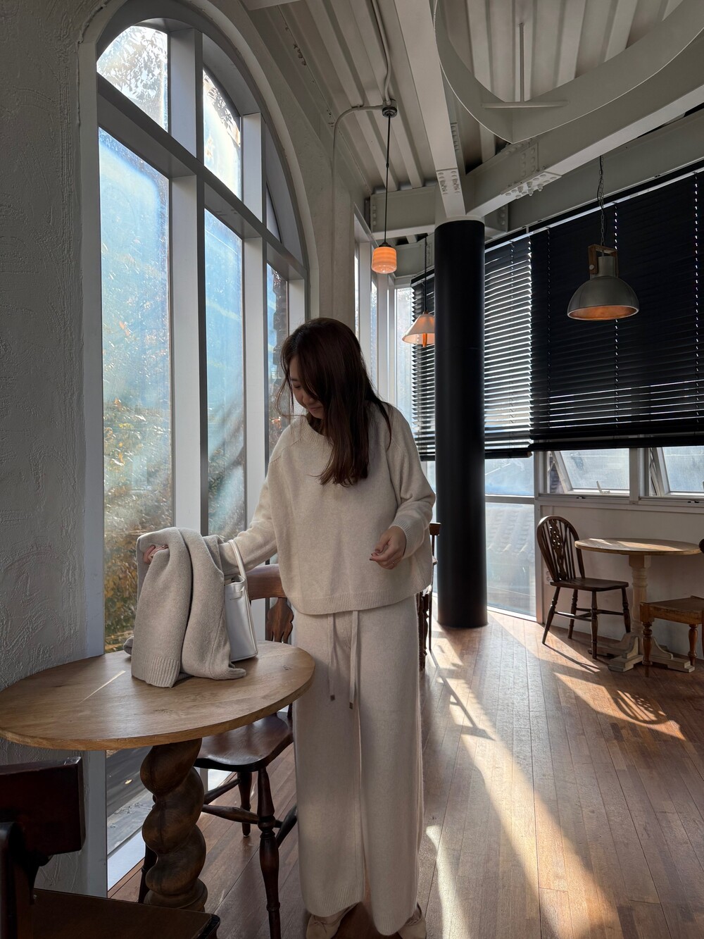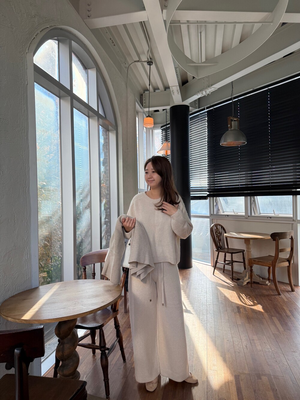 사이즈가 여유로워 니트팬츠의 단점인 몸의 라인의 드러남이 전혀 없어 입기에 너무도 편안합니다.