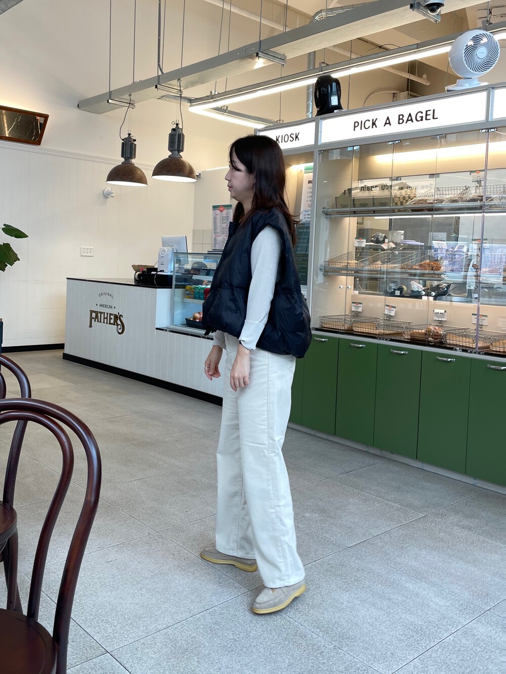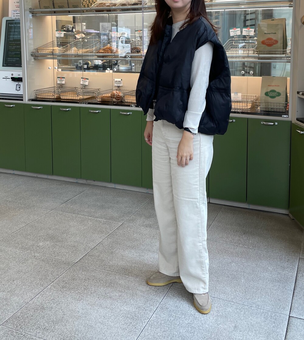 소재도 두껍지 않아 부해 보이지 않지만, 코듀로이 특유에 따뜻한 때문에 겨울에 입기도 좋구요,