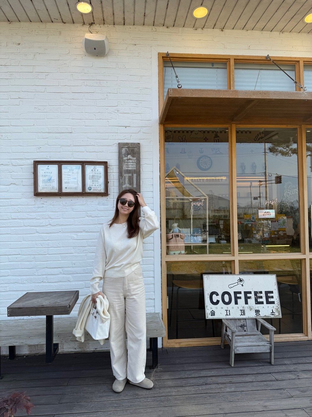 컬러도 겨울 코트와 니트들과 잘 어울릴 코지한 컬러감의 크림 컬러구요