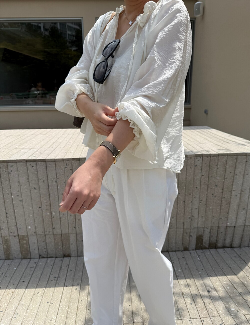 앞중심은 제감 컬러단추로 깔끔하면서도 캐주얼한 느낌을 주고요,